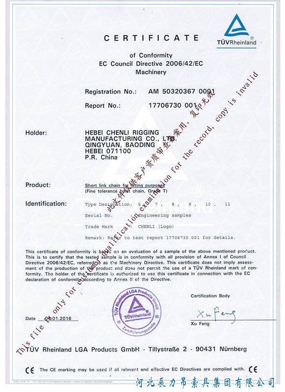 中國(guó)一家獲得CE起重鏈條認(rèn)證的廠家